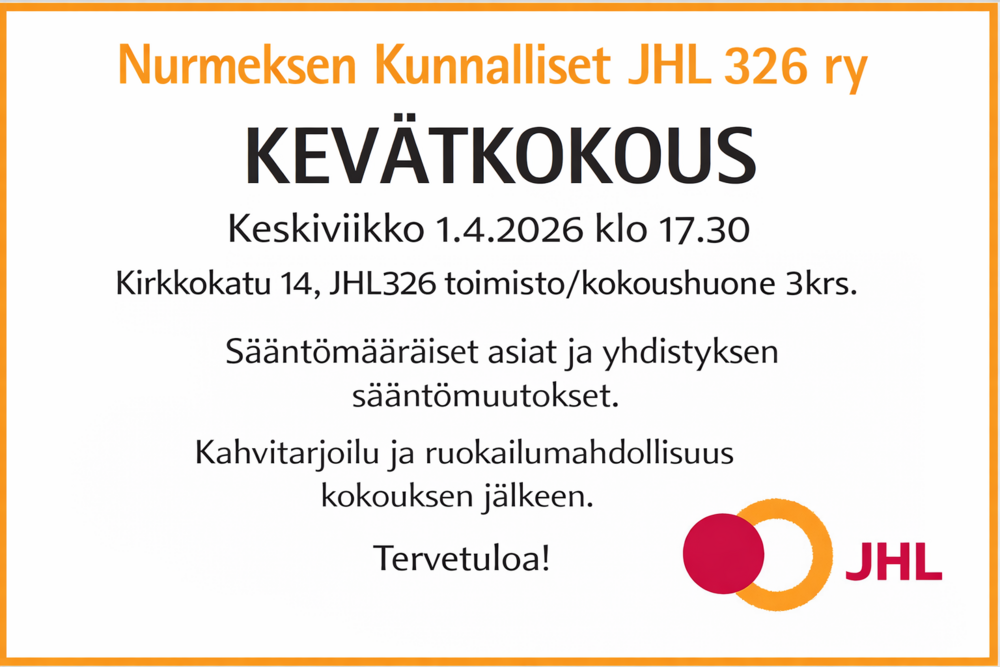 Oma JHL-yhdistyksesi Nurmeksen kunnalliset JHL326 tarjoaa sinulle myös nämä jäsenedut: